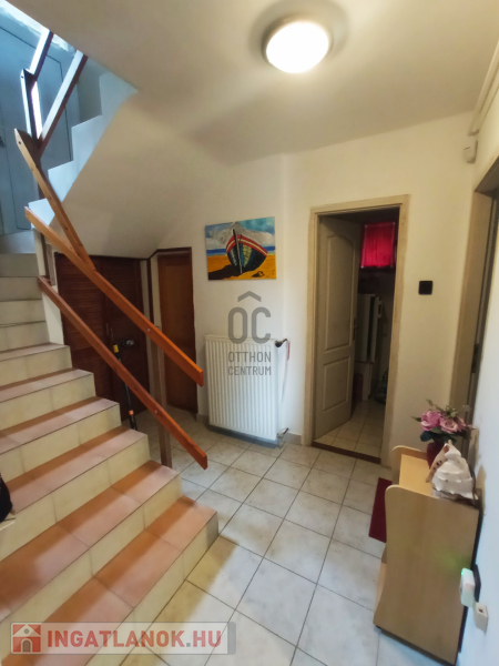 A ház utca fronti bejárata középen helyezkedik el, lefelé az alsó szinten egy hálószoba, fürdőszoba, étkező-konyha kapott helyet, ahonnan ki tudunk lépni a közvetlenül a teraszra/kertbe, továbbá egy tároló is található. A bejárattól felfelé az emeleti szinten további 1 háló szoba, fürdőszoba és egy 16 nm nagyságú nappali helyezkedik el, csodálatos panorámát nyújtó erkéllyel. Téli időszakban meleg hangulatot árasztó kandallóval.